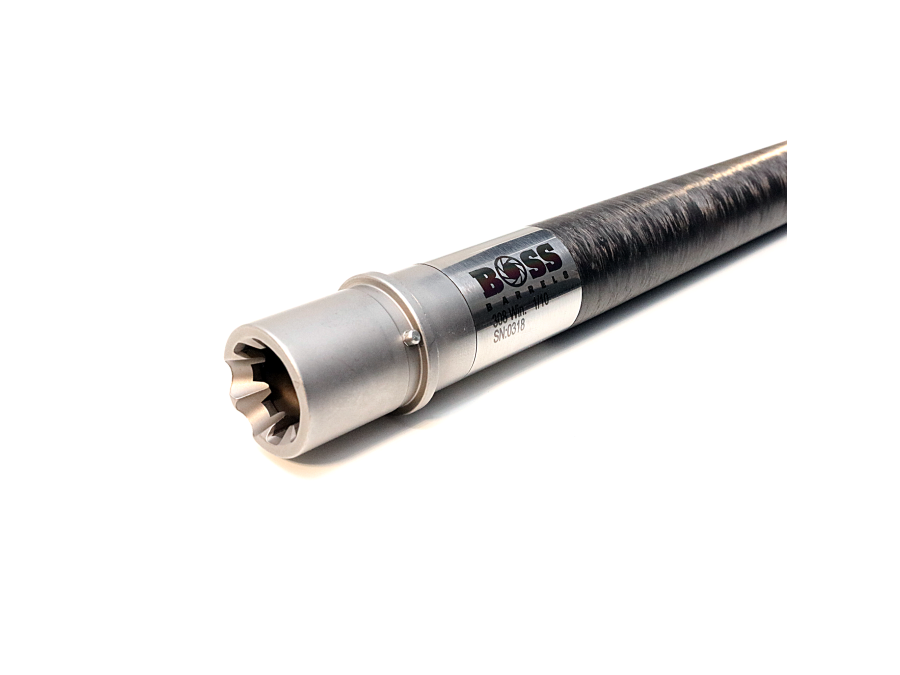 416R stainless blank turned down to a desired proile and reinforced with aerospace grade materials. Manufactured in-house using advanced composite technology, our composite reinforced barrels come in at a fraction of the weight of legacy steel barrel contours. By utilizing a multi-step process and proprietary thermally conductive material blends we are able to produce a much lighter barrel without sacrifcing strength or rigidity.