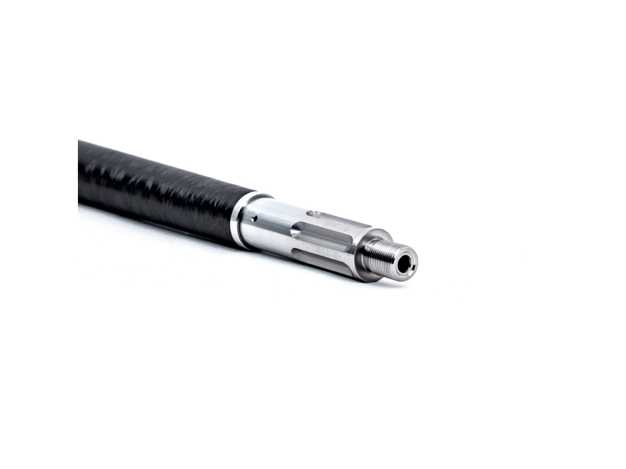 416R stainless blank turned down to a desired proile and reinforced with aerospace grade materials. Manufactured in-house using advanced composite technology, our composite reinforced barrels come in at a fraction of the weight of legacy steel barrel contours. By utilizing a multi-step process and proprietary thermally conductive material blends we are able to produce a much lighter barrel without sacrifcing strength or rigidity.