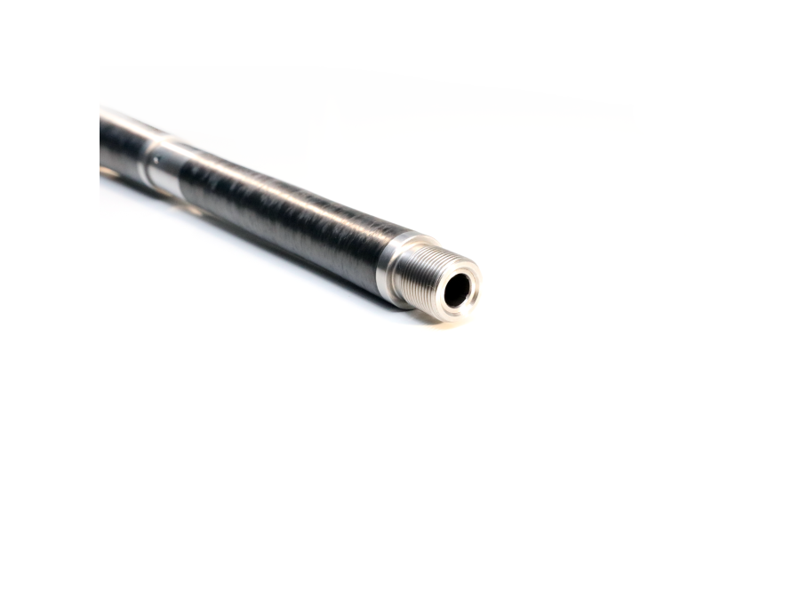 416R stainless blank turned down to a desired proile and reinforced with aerospace grade materials. Manufactured in-house using advanced composite technology, our composite reinforced barrels come in at a fraction of the weight of legacy steel barrel contours. By utilizing a multi-step process and proprietary thermally conductive material blends we are able to produce a much lighter barrel without sacrifcing strength or rigidity.