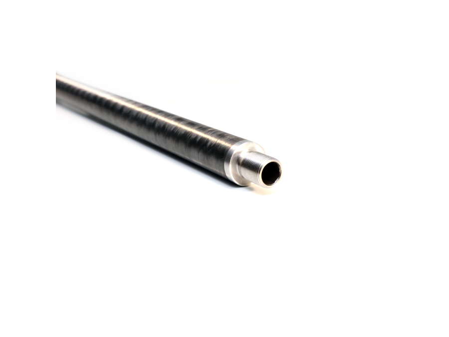 416R stainless blank turned down to a desired proile and reinforced with aerospace grade materials. Manufactured in-house using advanced composite technology, our composite reinforced barrels come in at a fraction of the weight of legacy steel barrel contours. By utilizing a multi-step process and proprietary thermally conductive material blends we are able to produce a much lighter barrel without sacrifcing strength or rigidity.