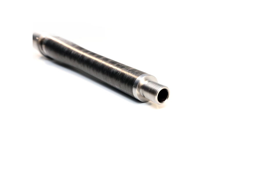 416R stainless blank turned down to a desired proile and reinforced with aerospace grade materials. Manufactured in-house using advanced composite technology, our composite reinforced barrels come in at a fraction of the weight of legacy steel barrel contours. By utilizing a multi-step process and proprietary thermally conductive material blends we are able to produce a much lighter barrel without sacrifcing strength or rigidity.